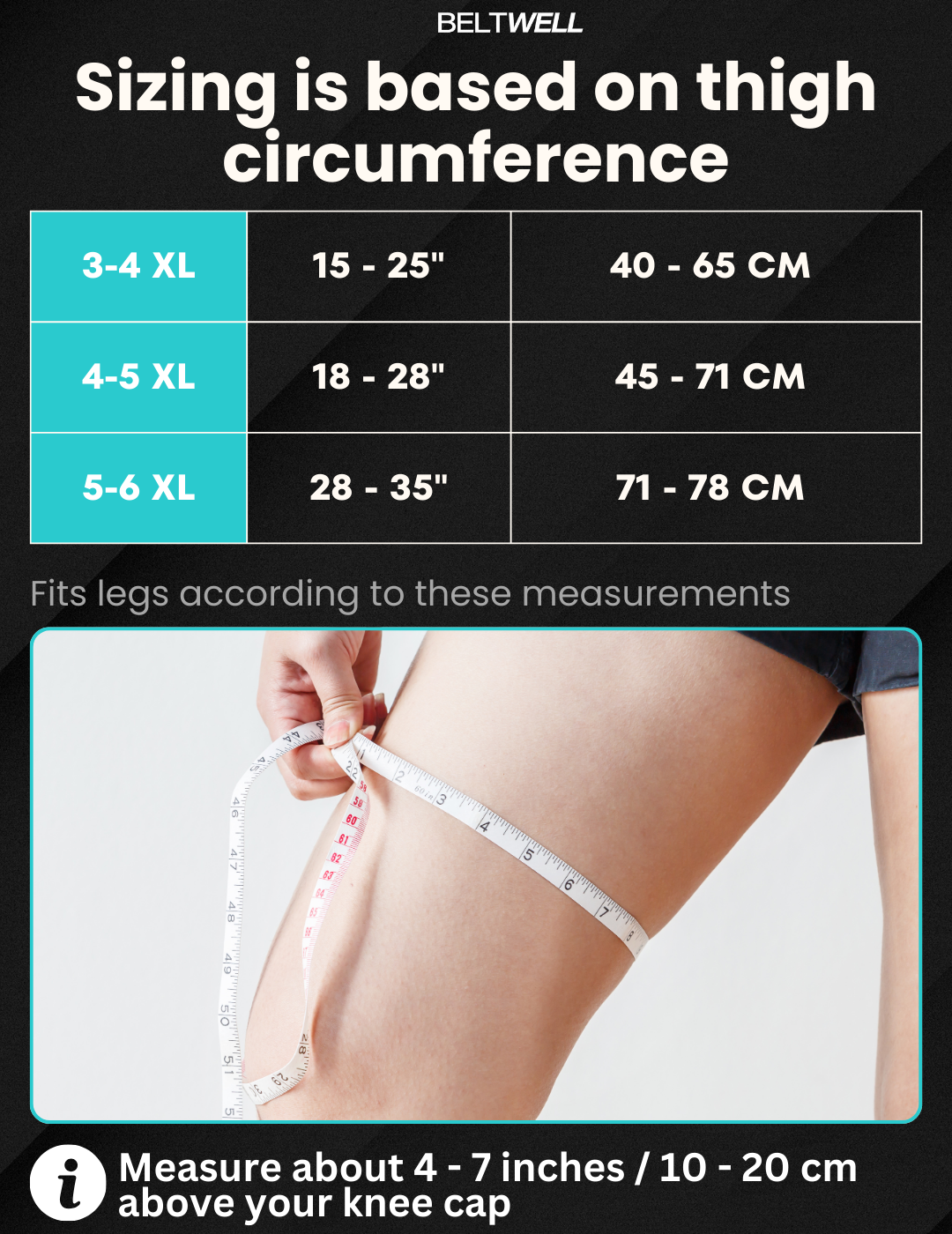 The new Beltwell knee compression sleeve instantly supports your knees and gives you more confidence to walk with more stable knees. The knee sleeves are made to fit large legs and that's why they are so unique. Unlike other knee braces, this knee sleeve is comfortable and improves circulation in your knee joint for maximum pain relief.